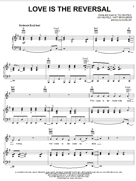 Download or print Starfield Love Is The Reversal sheet music, chords and digital score arranged for Piano, Vocal & Guitar Chords (Right-Hand Melody). This Christian score includes 8 page(s).