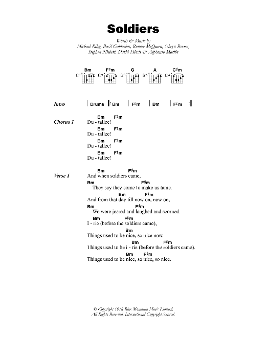 Download or print Steel Pulse Soldiers sheet music, chords and digital score arranged for Guitar Chords/Lyrics. This Reggae score includes 3 page(s).