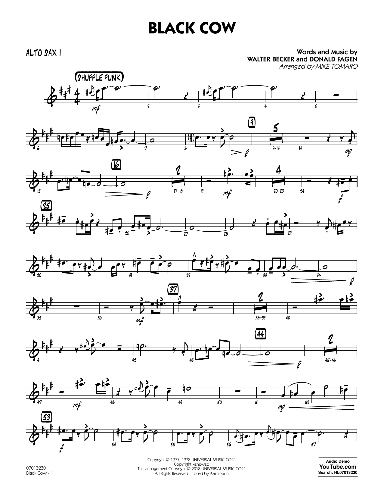 Download or print Steely Dan Black Cow (arr. Mike Tomaro) - Alto Sax 1 sheet music, chords and digital score arranged for Jazz Ensemble. This Pop score includes 2 page(s).