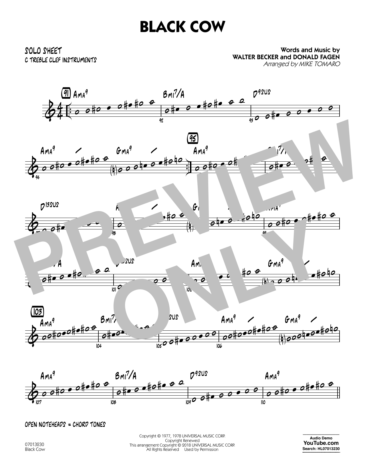 Download or print Steely Dan Black Cow (arr. Mike Tomaro) - C Solo Sheet sheet music, chords and digital score arranged for Jazz Ensemble. This Pop score includes 1 page(s).