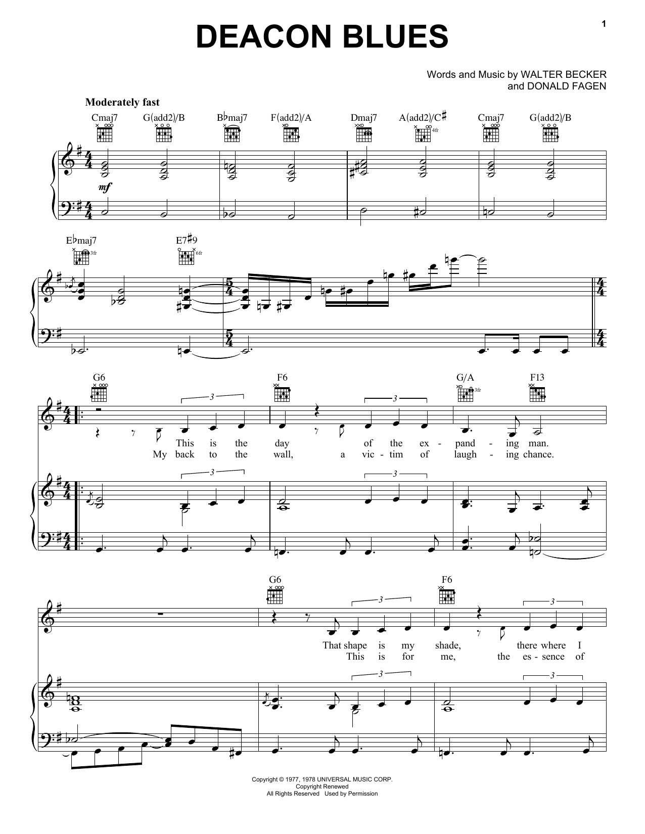 Download or print Steely Dan Deacon Blues sheet music, chords and digital score arranged for Piano Solo. This Jazz score includes 5 page(s).