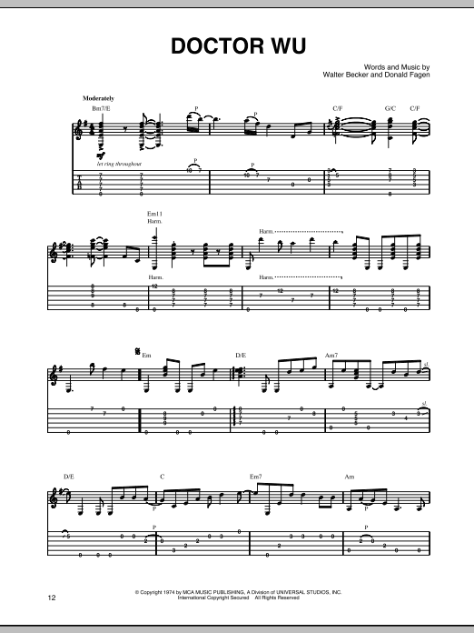 Download or print Steely Dan Doctor Wu sheet music, chords and digital score arranged for Piano, Vocal & Guitar Chords (Right-Hand Melody). This Pop score includes 4 page(s).