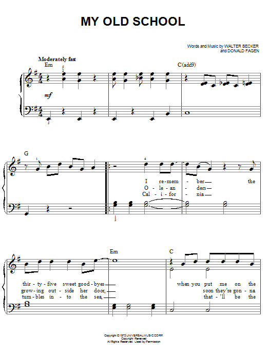 Download or print Steely Dan My Old School sheet music, chords and digital score arranged for Transcribed Score. This Rock score includes 13 page(s).