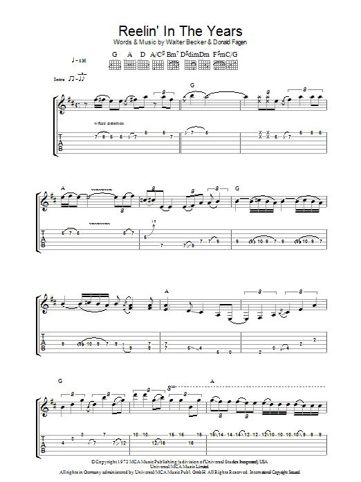 Download or print Steely Dan Reelin' In The Years sheet music, chords and digital score arranged for Guitar Chords/Lyrics. This Rock score includes 4 page(s).