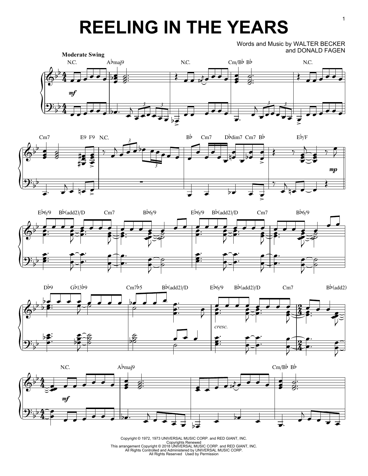 Download or print Steely Dan Reeling In The Years [Jazz version] sheet music, chords and digital score arranged for Piano Solo. This Jazz score includes 3 page(s).