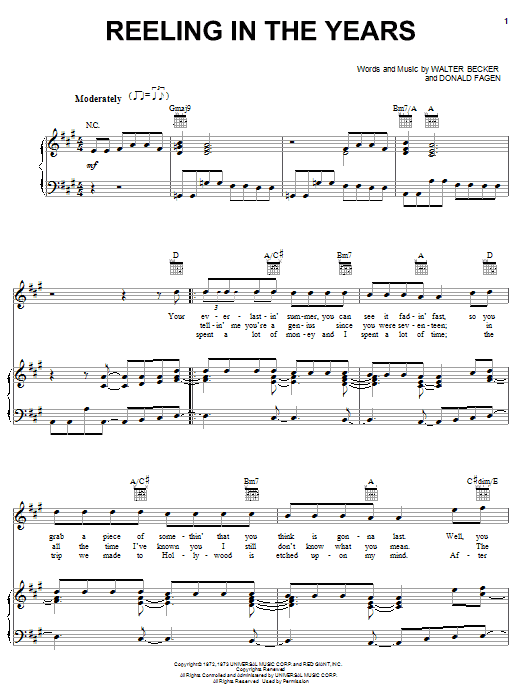 Download or print Steely Dan Reeling In The Years sheet music, chords and digital score arranged for Lead Sheet / Fake Book. This Pop score includes 1 page(s).