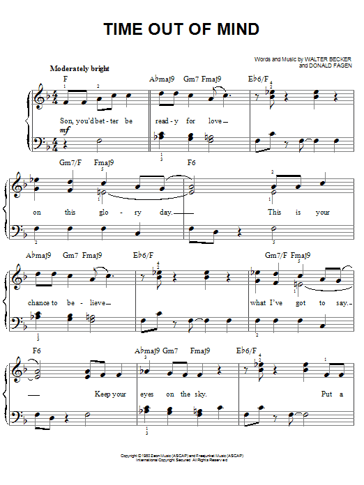 Download or print Steely Dan Time Out Of Mind sheet music, chords and digital score arranged for Easy Piano. This Rock score includes 5 page(s).