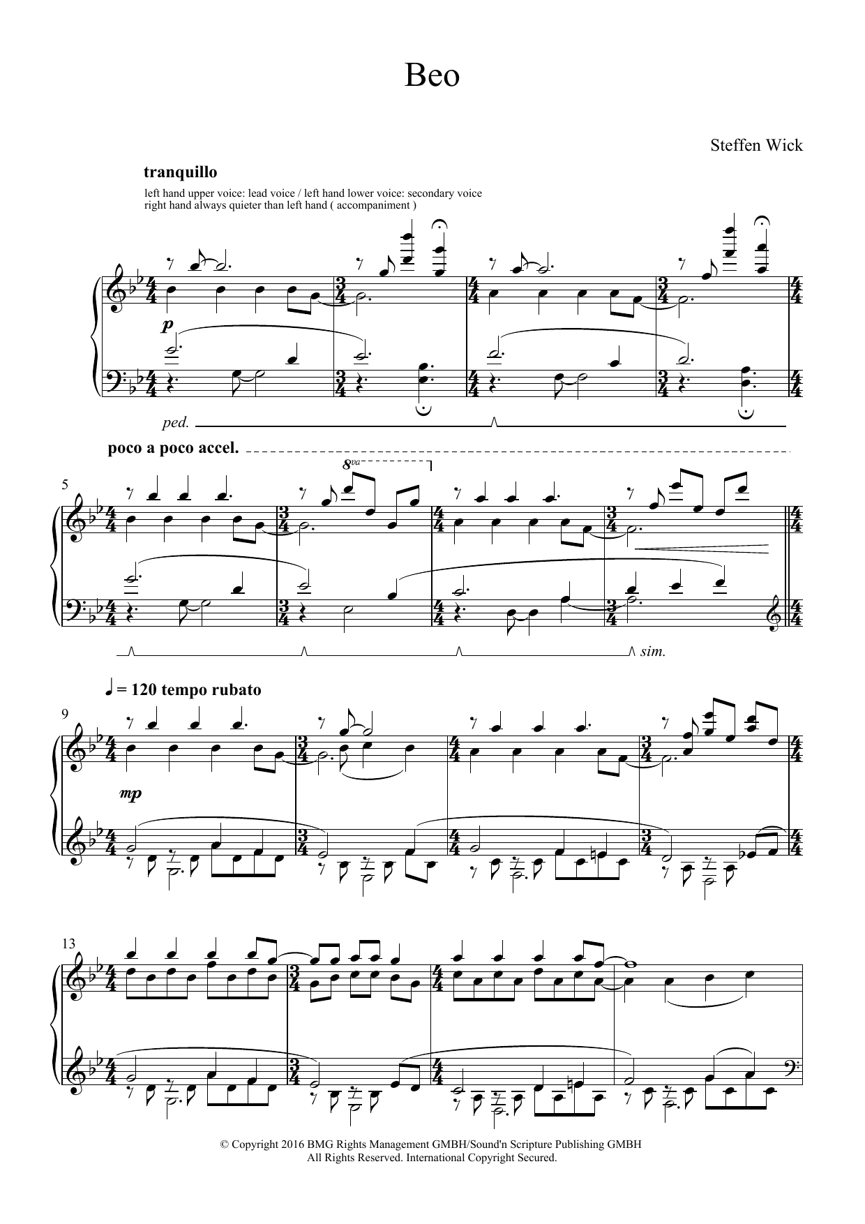 Download or print Steffen Wick Beo sheet music, chords and digital score arranged for Piano Solo. This Classical score includes 11 page(s).