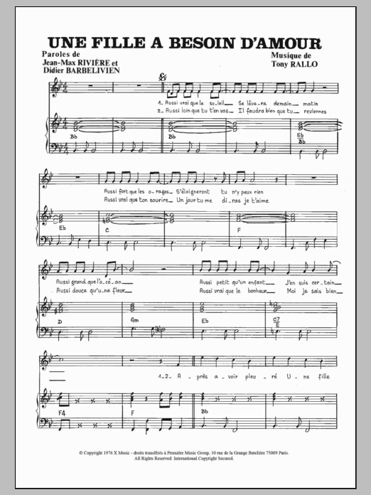 Quick facts Fille A Besoin D'amour about digital sheet music