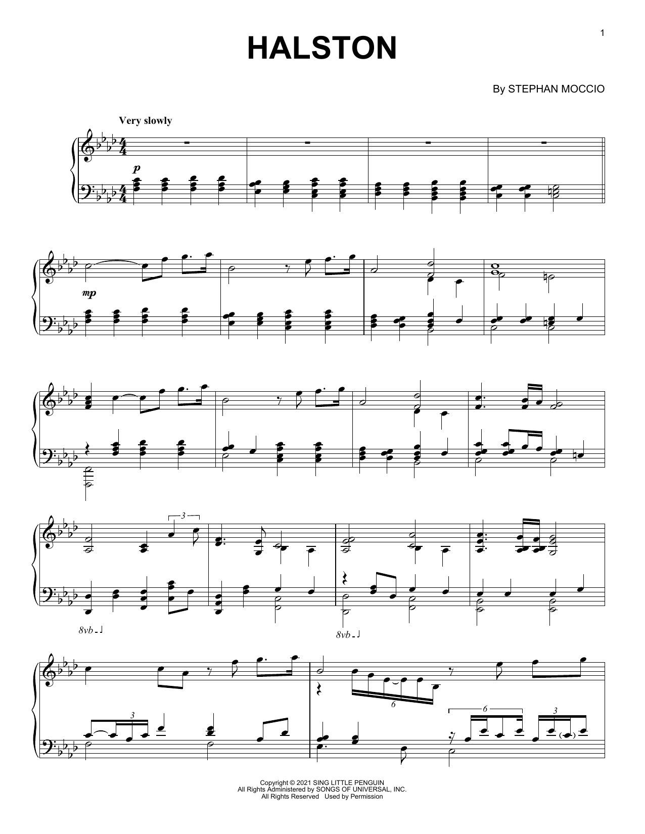 Download or print Stephan Moccio Halston sheet music, chords and digital score arranged for Piano Solo. This Classical score includes 4 page(s).