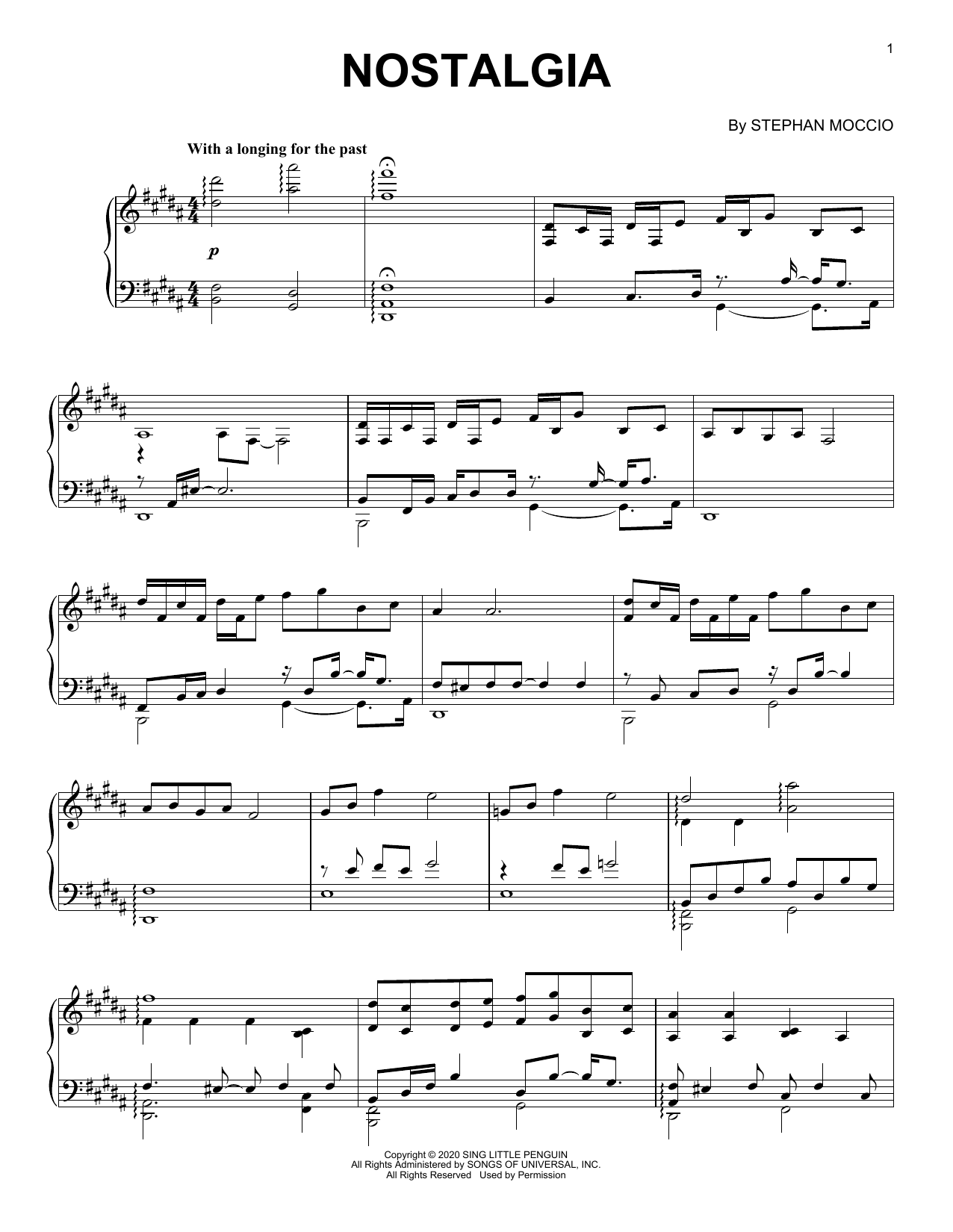 Download or print Stephan Moccio Nostalgia sheet music, chords and digital score arranged for Piano Solo. This Pop score includes 3 page(s).