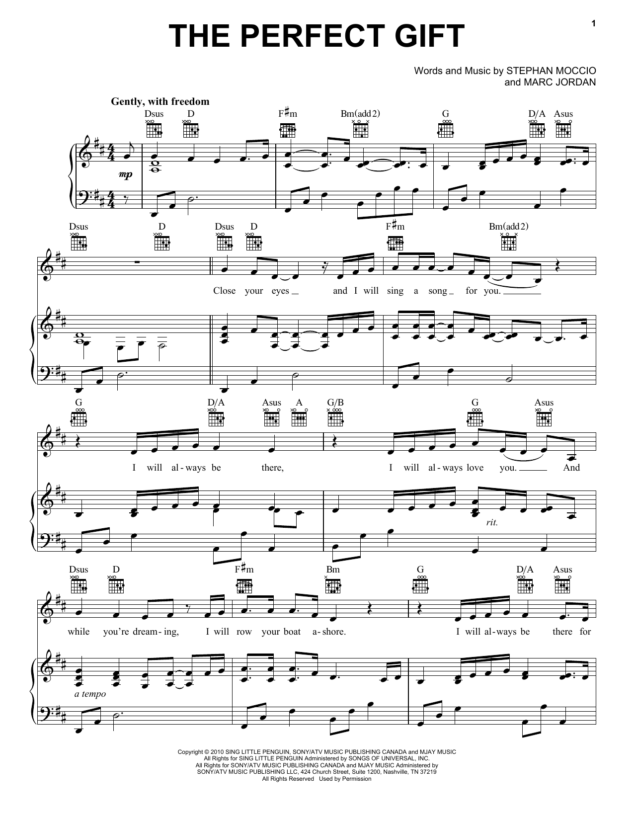 Download or print Stephan Moccio The Perfect Gift sheet music, chords and digital score arranged for Piano, Vocal & Guitar Chords (Right-Hand Melody). This Pop score includes 3 page(s).