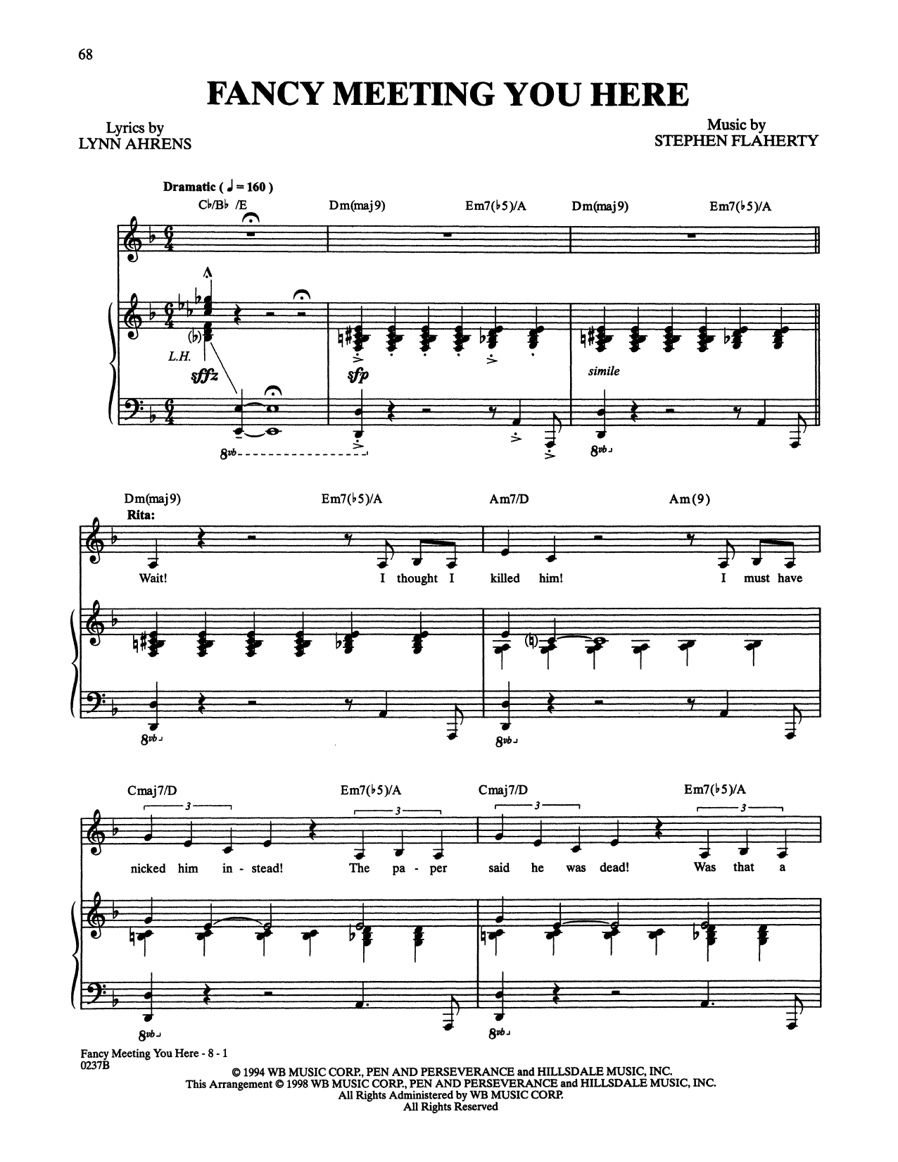 Download or print Stephen Flaherty and Lynn Ahrens Fancy Meeting You Here (from Lucky Stiff) sheet music, chords and digital score arranged for Piano & Vocal. This Musical/Show score includes 8 page(s).