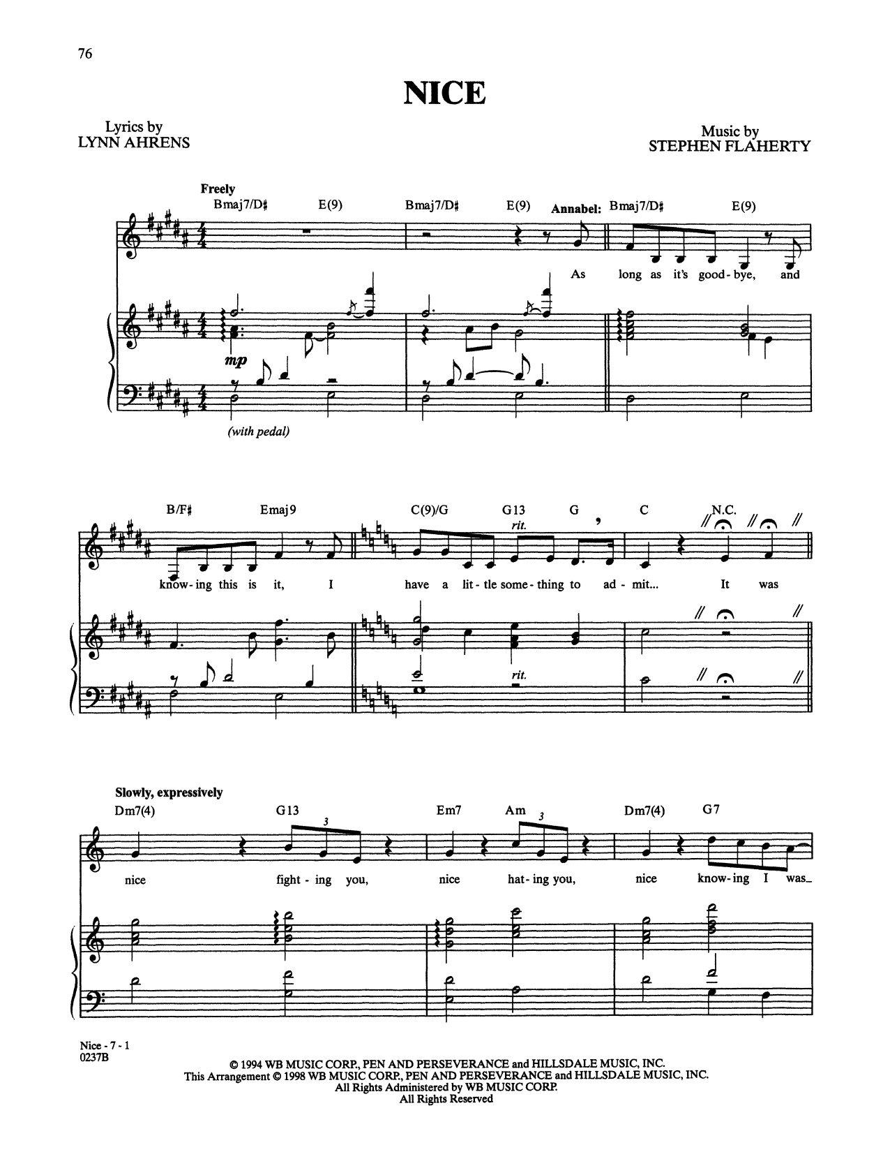 Download or print Stephen Flaherty and Lynn Ahrens Nice (from Lucky Stiff) sheet music, chords and digital score arranged for Piano & Vocal. This Broadway score includes 7 page(s).