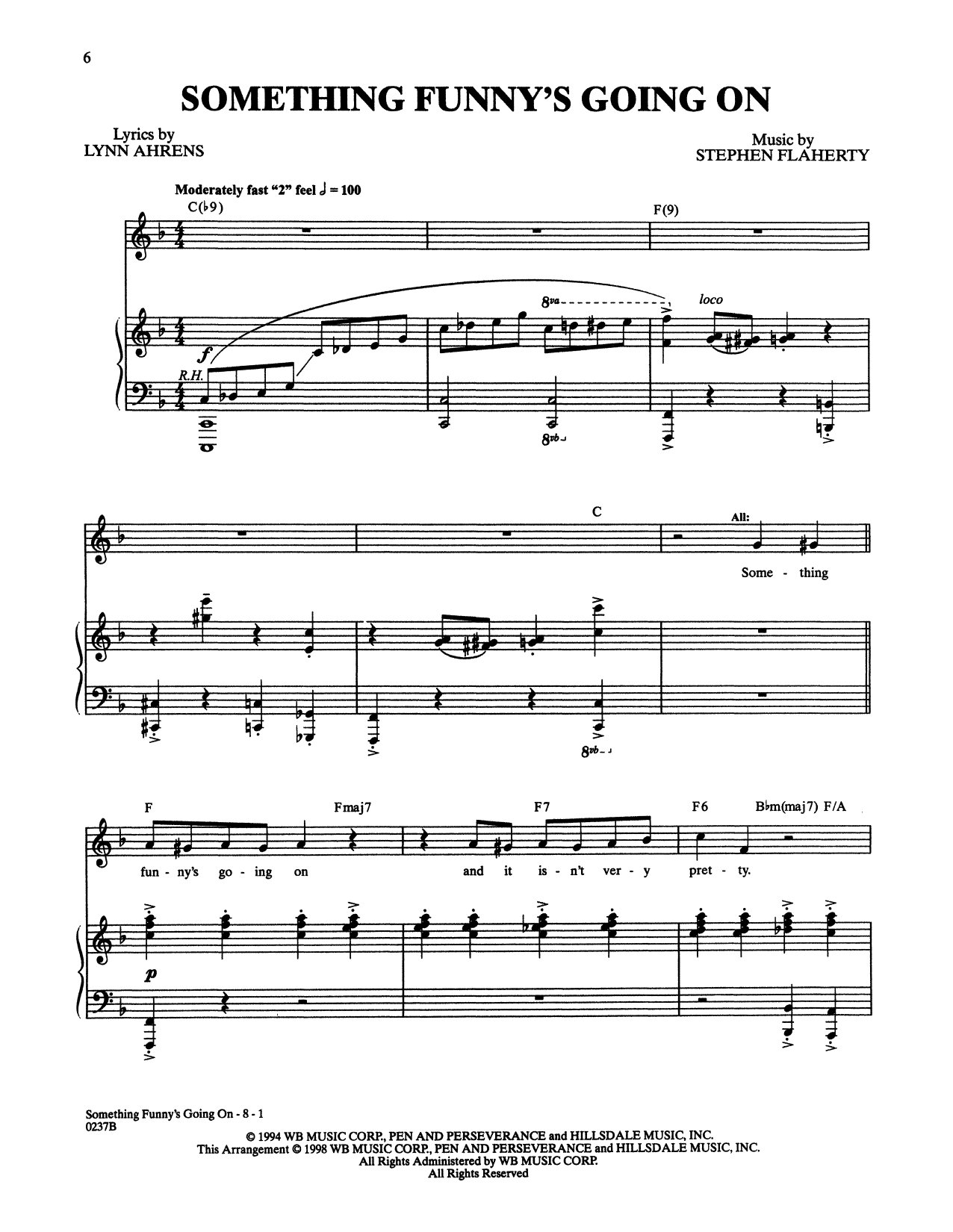 Download or print Stephen Flaherty and Lynn Ahrens Something Funny's Going On (from Lucky Stiff) sheet music, chords and digital score arranged for Piano & Vocal. This Broadway score includes 8 page(s).