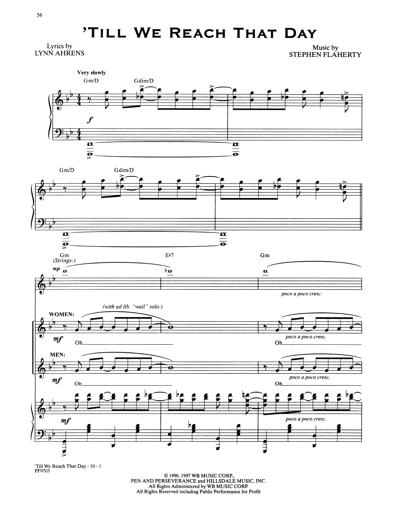 Download or print Stephen Flaherty and Lynn Ahrens Til We Reach That Day (from Ragtime: The Musical) sheet music, chords and digital score arranged for Piano & Vocal. This Broadway score includes 10 page(s).