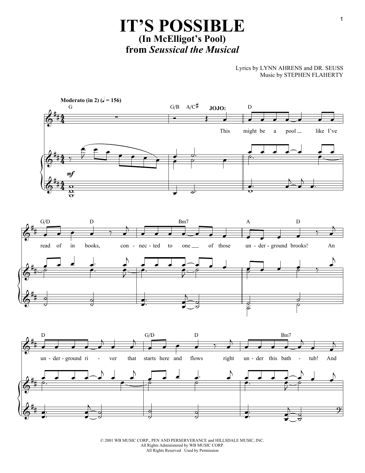 Download or print Lynn Ahrens and Stephen Flaherty It's Possible (In McElligot's Pool) [Solo version] (from Seussical The Musical) sheet music, chords and digital score arranged for Piano & Vocal. This Children score includes 6 page(s).