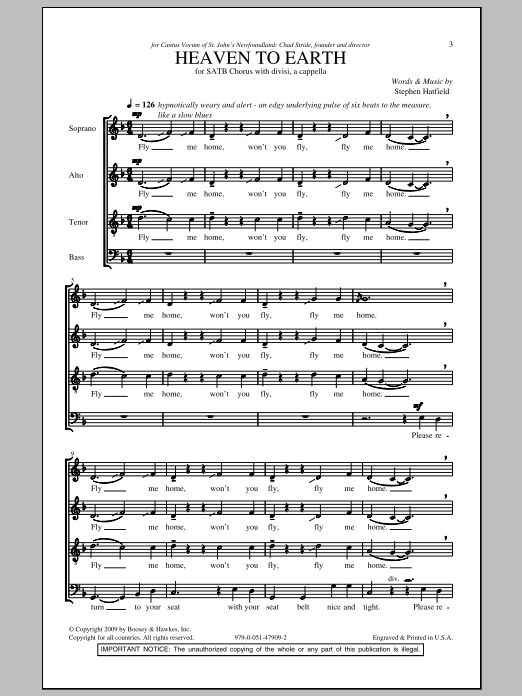 Download or print Stephen Hatfield Heaven To Earth sheet music, chords and digital score arranged for SATB Choir. This Holiday score includes 14 page(s).