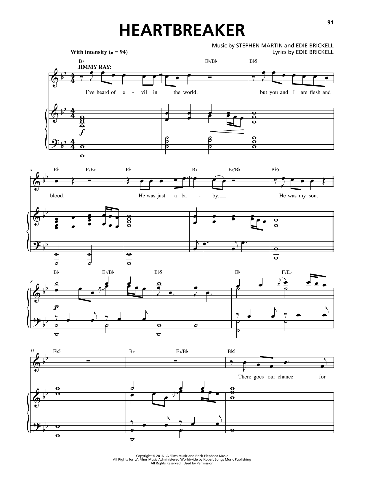 Download or print Stephen Martin & Edie Brickell Heartbreaker sheet music, chords and digital score arranged for Piano & Vocal. This Musical/Show score includes 5 page(s).