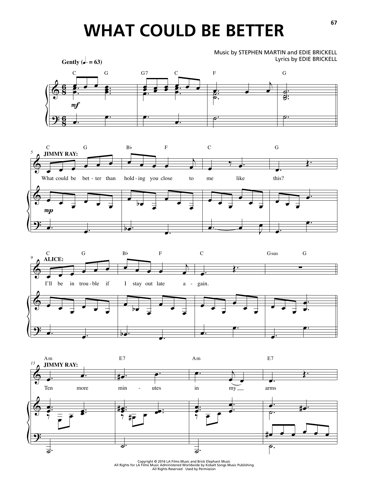 Download or print Stephen Martin & Edie Brickell What Could Be Better sheet music, chords and digital score arranged for Piano & Vocal. This Musical/Show score includes 6 page(s).