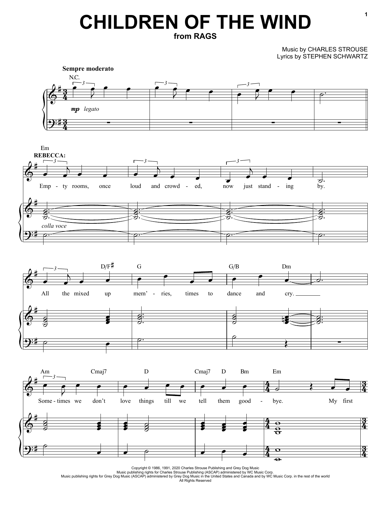 Download or print Stephen Schwartz & Charles Strouse Children Of The Wind (from Rags: The Musical) sheet music, chords and digital score arranged for Piano & Vocal. This Broadway score includes 5 page(s).