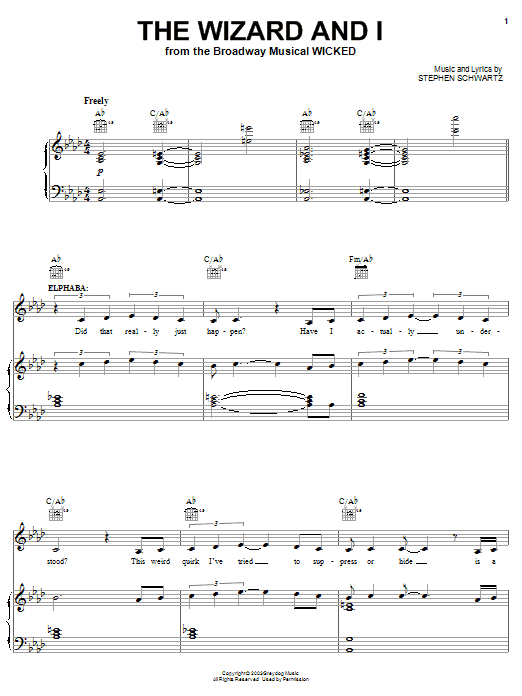 Download or print Stephen Schwartz The Wizard And I (from Wicked) sheet music, chords and digital score arranged for Beginning Piano Solo. This Musical/Show score includes 3 page(s).
