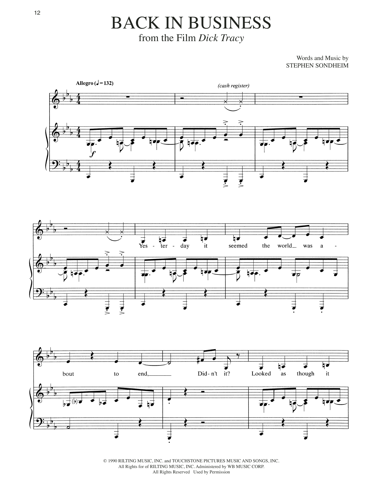 Download or print Stephen Sondheim Back In Business sheet music, chords and digital score arranged for Piano & Vocal. This Broadway score includes 12 page(s).
