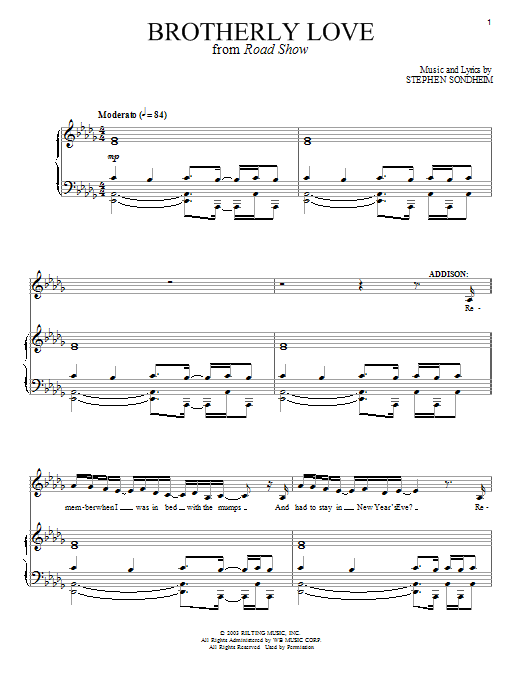 Download or print Stephen Sondheim Brotherly Love sheet music, chords and digital score arranged for Piano & Vocal. This Broadway score includes 6 page(s).