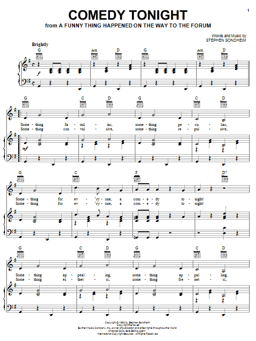 Download or print Stephen Sondheim Comedy Tonight sheet music, chords and digital score arranged for Piano & Vocal. This Broadway score includes 3 page(s).