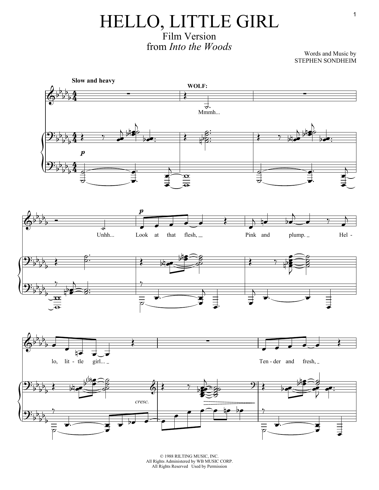 Download or print Stephen Sondheim Hello Little Girl (Film Version) sheet music, chords and digital score arranged for Piano & Vocal. This Film/TV score includes 7 page(s).