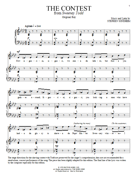 Download or print Stephen Sondheim The Contest sheet music, chords and digital score arranged for Piano & Vocal. This Musical/Show score includes 4 page(s).