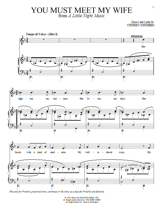 Download or print Stephen Sondheim You Must Meet My Wife sheet music, chords and digital score arranged for Piano & Vocal. This Musical/Show score includes 5 page(s).
