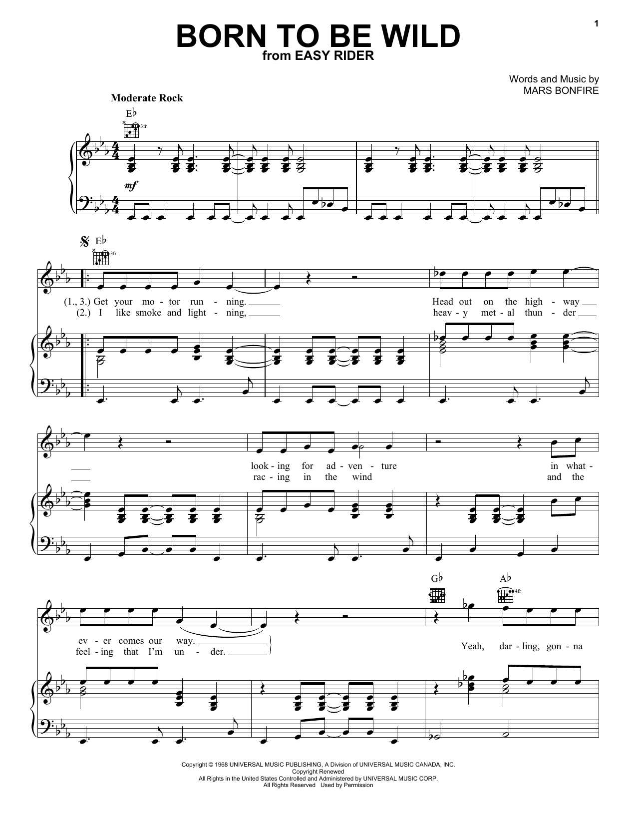 Download or print Steppenwolf Born To Be Wild sheet music, chords and digital score arranged for Cello Solo. This Pop score includes 1 page(s).