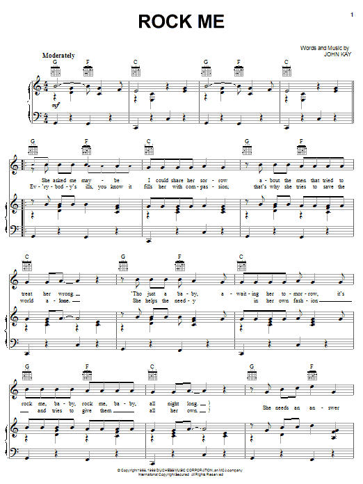 Download or print Steppenwolf Rock Me sheet music, chords and digital score arranged for ChordBuddy. This Pop score includes 2 page(s).