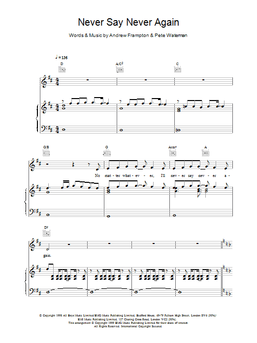 Download or print Steps Never Say Never Again sheet music, chords and digital score arranged for Piano, Vocal & Guitar Chords. This Pop score includes 6 page(s).