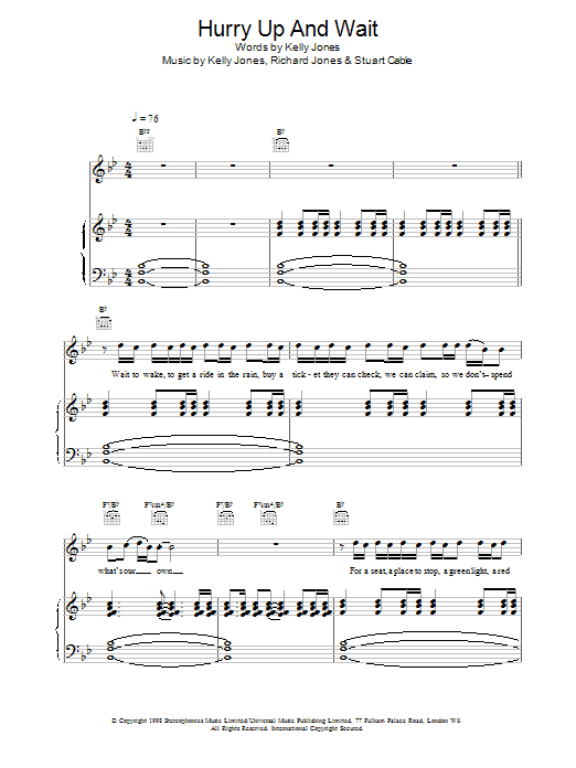 Download or print Stereophonics Hurry Up And Wait sheet music, chords and digital score arranged for Guitar Tab. This Rock score includes 7 page(s).