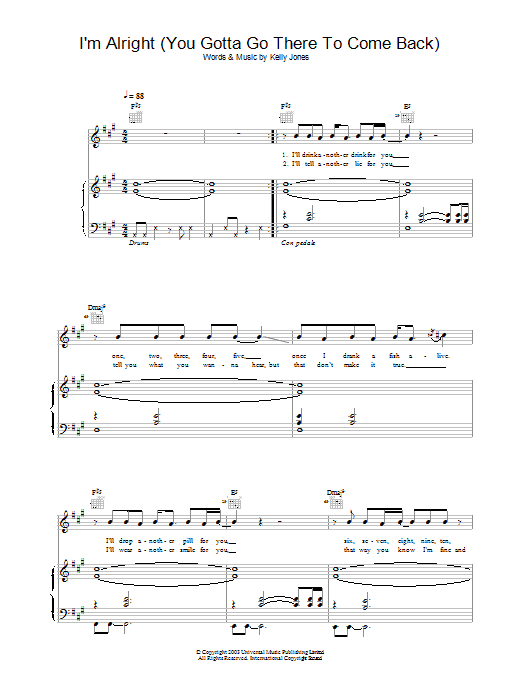 Download or print Stereophonics I'm Alright (You Gotta Go There To Come Back) sheet music, chords and digital score arranged for Guitar Chords/Lyrics. This Rock score includes 2 page(s).