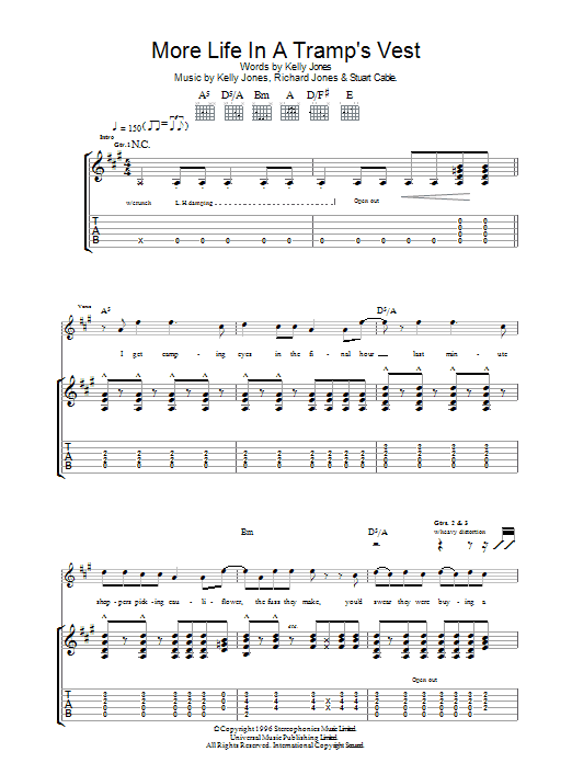 Download or print Stereophonics More Life In A Tramp's Vest sheet music, chords and digital score arranged for Piano, Vocal & Guitar Chords. This Pop score includes 4 page(s).