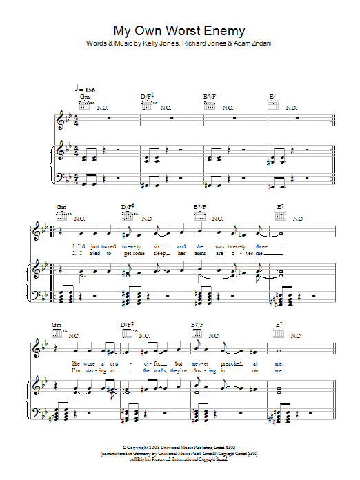 Download or print Stereophonics My Own Worst Enemy sheet music, chords and digital score arranged for Piano, Vocal & Guitar Chords. This Pop score includes 5 page(s).