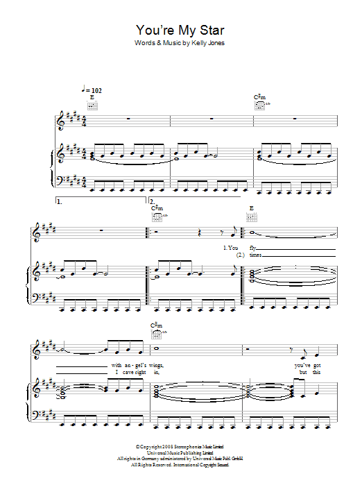 Download or print Stereophonics You're My Star sheet music, chords and digital score arranged for Piano, Vocal & Guitar Chords. This Pop score includes 6 page(s).