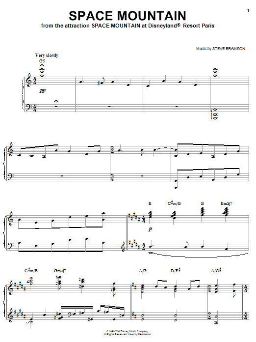 Download or print Steve Bramson Space Mountain sheet music, chords and digital score arranged for Piano Solo. This Children score includes 6 page(s).