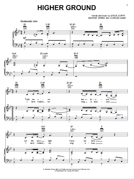 Download or print Steve Dorff Higher Ground sheet music, chords and digital score arranged for Piano, Vocal & Guitar Chords (Right-Hand Melody). This Country score includes 4 page(s).