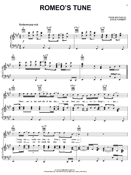 Download or print Steve Forbert Romeo's Tune sheet music, chords and digital score arranged for Piano, Vocal & Guitar Chords (Right-Hand Melody). This Country score includes 6 page(s).