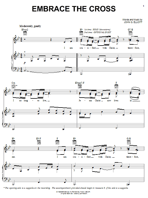 Download or print Steve Green Embrace The Cross sheet music, chords and digital score arranged for Piano, Vocal & Guitar Chords (Right-Hand Melody). This Christian score includes 5 page(s).