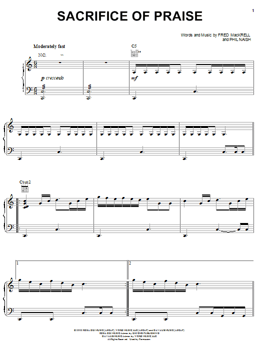 Download or print Steve Green Sacrifice Of Praise sheet music, chords and digital score arranged for Piano, Vocal & Guitar Chords (Right-Hand Melody). This Christian score includes 9 page(s).