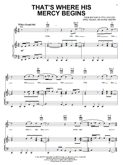 Download or print Steve Green That's Where His Mercy Begins sheet music, chords and digital score arranged for Piano, Vocal & Guitar Chords (Right-Hand Melody). This Christian score includes 6 page(s).
