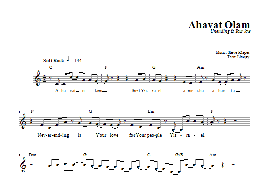 Download or print Steve Klaper Ahavat Olam sheet music, chords and digital score arranged for Lead Sheet / Fake Book. This Traditional score includes 1 page(s).
