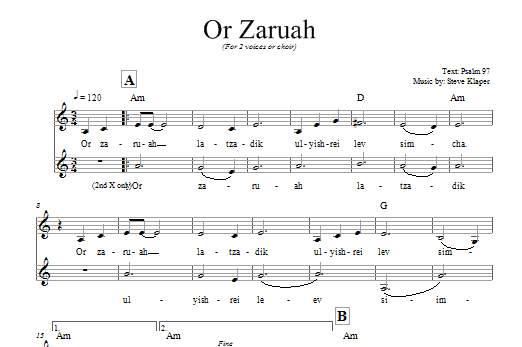 Download or print Steve Klaper Or Zaruah sheet music, chords and digital score arranged for Lead Sheet / Fake Book. This Traditional score includes 1 page(s).