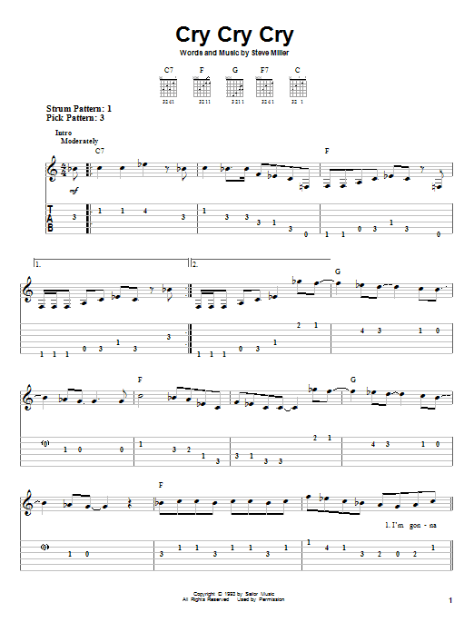 Download or print Steve Miller Band Cry Cry Cry sheet music, chords and digital score arranged for Guitar Tab. This Pop score includes 11 page(s).