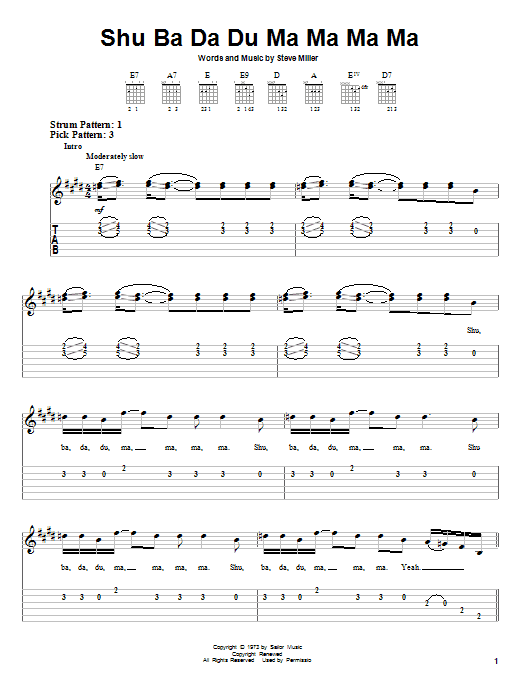 Download or print Steve Miller Band Shu Ba Da Du Ma Ma Ma Ma sheet music, chords and digital score arranged for Guitar Tab. This Pop score includes 15 page(s).